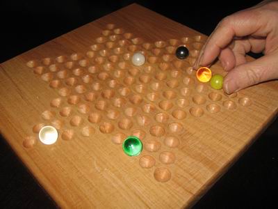 Vi hadde lyst til å spille noe lett og fant fram kinasjakk. Som barn, spilte vi det mye og det ble et koselig gjensyn. Alle startet med å bygge fine baner ut fra eget bo. Banene lignet mistenkelig på barndommens baner. Gammel lærdom glemmes ikke. Denne gangen kom Karina (oransje) vinnende ut.