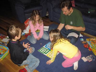 Karl Thomas begynte å spille Ludo med barna. Som vanlig, strandet det. Ludo er for langvarig for små barn. Mathias var veldig ivrig, men jentene ga seg.