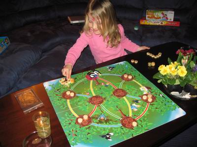 Minstejenta var alene hjemme med foreldrene mens de to andre var på karneval. Da spilte vi Sequence for kids, Looping Louie og Mektige Skjærer. Vi hadde tent stearinlys og satt i mørket. Karl Thomas sovnet så da spilte bare May Alise og Karina. Karina trillet masse skjærer i begynnelsen av spillet. Det trodde hun betydde at man kunne flytte hvor man vil. Da May Alise omsider trillet en skjære, fortalte hun at hun skulle stjele en ring av Karina. Karina hadde nemlig husket feil, - en skjære betyr at man kan få stjele, ikke at man kan flytte hvor man vil. Etter det trillet May Alise masse skjærer og vant med 14 mot 11 brikker.