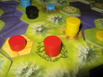 Halvveis ute i spillet kom Karl Thomas plutselig på at han hadde glemt å fortelle om regelen som sier at man ikke kan bygge byer inntil andre byer. Vi så ut over brettet der det lå mange byer inntil hverandre, lo litt og ble enige om at vi spilte uten den regelen.