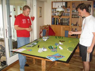 Karl Thomas og Dagfinn stilte opp Warhammer på spisebordet, satte opp hærer og spilte. "Møkkaterninger!" konkluderte Dagfinn. Han tapte.